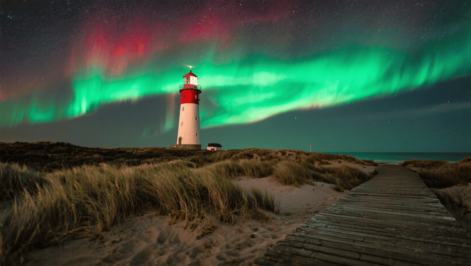 Ein See, ein Baum, ein Leuchtturm, eine Klippe, ein einsames Haus: Dadurch bekommt dein Foto Tiefe. Obwohl Polarlichter faszinieren, wirkt eine grüne Fläche über dem Horizont schnell beliebig. Nutze daher Drittelregel, führende Linien (Deich, Steg, Straße) und Panoramen, wenn die Bögen sehr breit werden.